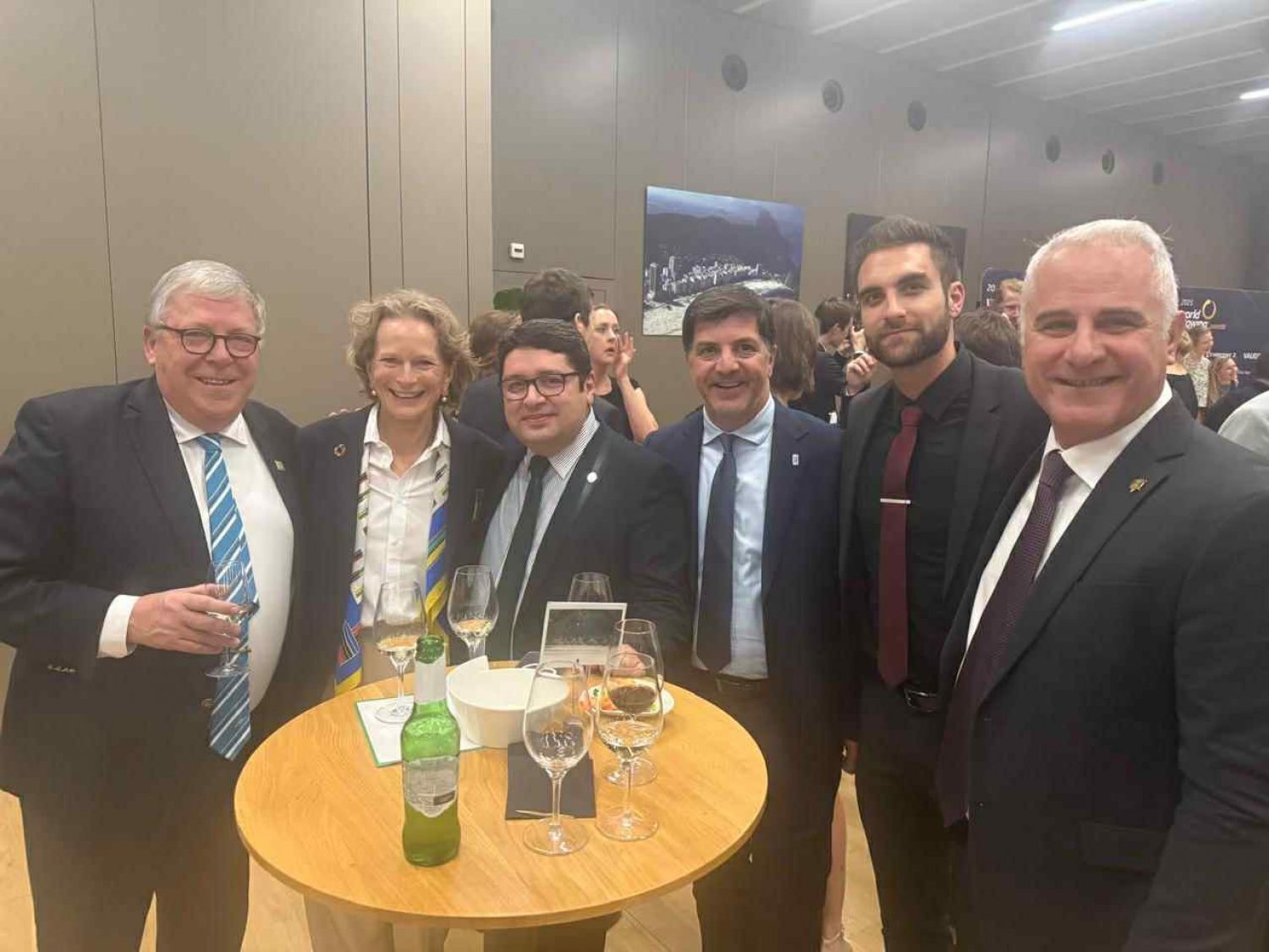 Τον συνόδευαν ο πρόεδρος της Ελληνικής Κωπηλατικής Ομοσπονδίας Βασίλης Πολύμερος και ο Γενικός Γραμματέας Ρότζερ Γκαττ.
