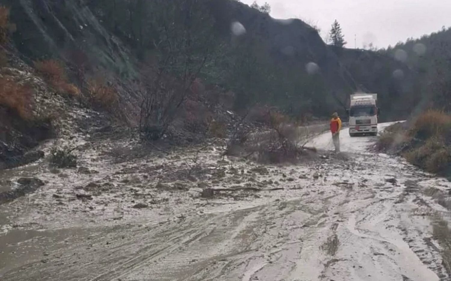 Νερά, χώματα και πέτρες κατέκλυσαν το οδόστρωμα το πρωί με αποτέλεσμα να κινηθούν άμεσα μηχανήματα από την Πολιτική Προστασία της Περιφέρειας και τους Δήμους για τον καθαρισμό.