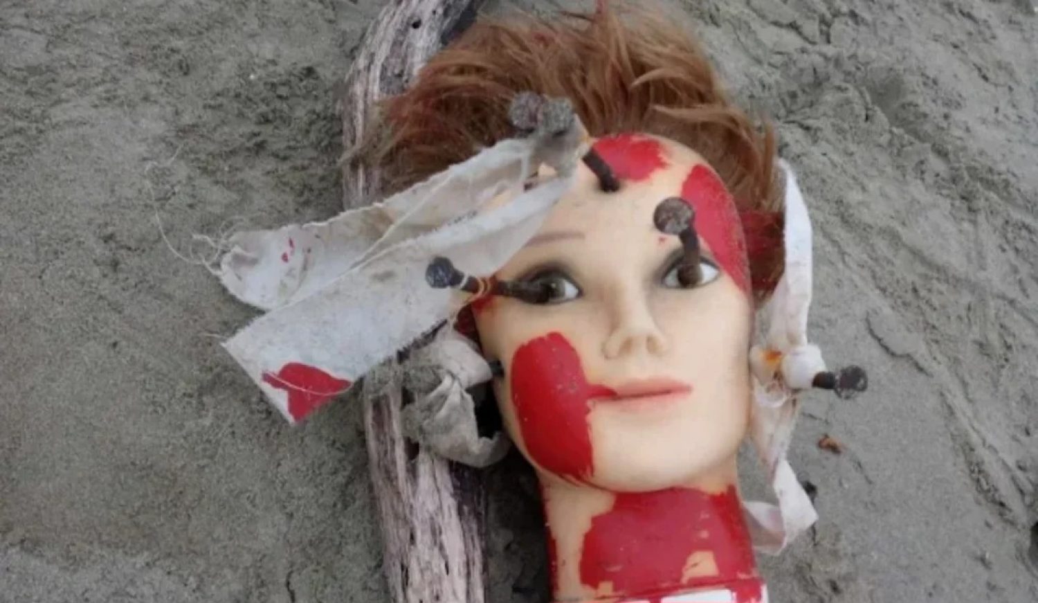 Ένα μακάβριο εύρημα προκάλεσε αναστάτωση στην παραλία του Δρεπάνου στην Ηγουμενίτσα. Μια κούκλα, πεταμένη στην άμμο, βρέθηκε με καρφιά καρφωμένα στο κεφάλι, δεμένα υφάσματα και έντονο κόκκινο χρώμα στο πρόσωπο και τον λαιμό, προκαλώντας έντονο προβληματισμό σε όσους την αντίκρισαν.