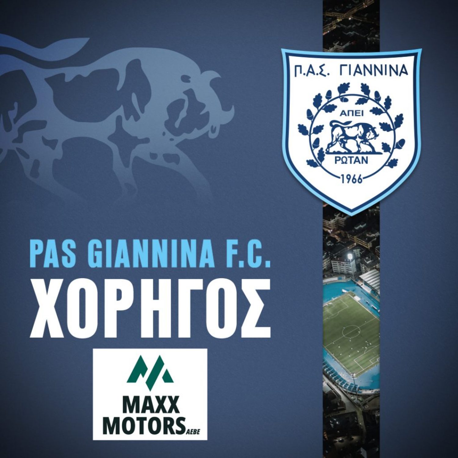 H Π.Α.Ε. Π.Α.Σ. ΓΙΑΝΝΙΝΑ 1966 θέλει να ευχαριστήσει την εταιρία “MAXX Motors A.E.B.E.” για την υποστήριξη της στη φετινή δύσκολη χρονιά της ομάδας μας συμμετέχοντας μέσα από το χορηγικό μας πρόγραμμα.