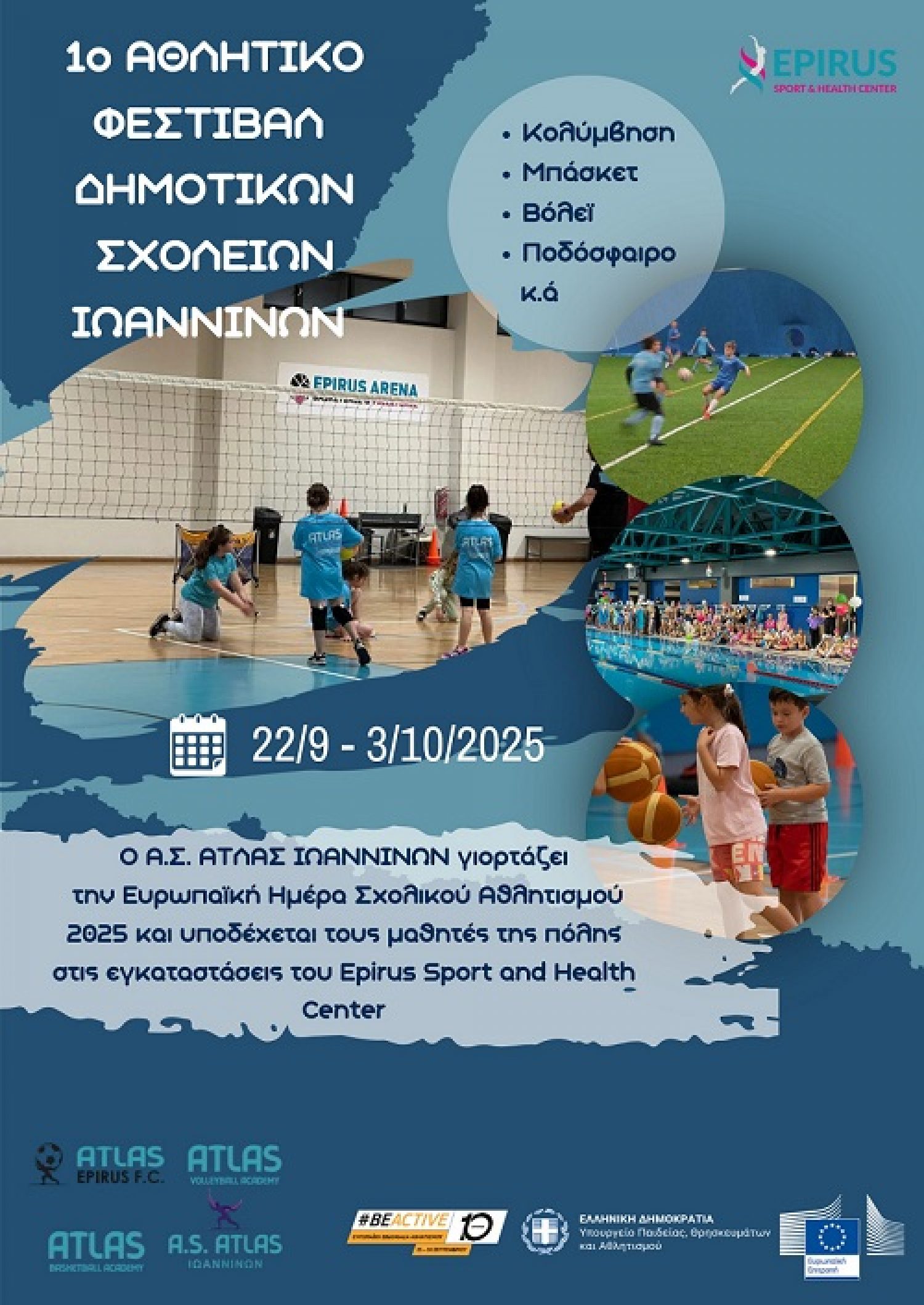 Από αυτή την προσπάθεια δεν θα μπορούσε να λείπει ο Αθλητικός Σύλλογος ΑΤΛΑΣ Ιωαννίνων, ο οποίος εξασφάλισε την αποκλειστική συνεργασία του μεγαλύτερου οικογενειακού αθλητικού κέντρου της χώρας, του Epirus Sport and Health Center και από κοινού προσφέρουν στα δημοτικά σχολεία της περιοχής την δυνατότητα να πραγματοποιήσουν μέχρι τις 3 Οκτωβρίου 2025 ημερήσιες οργανωμένες εκδρομές, ώστε οι μαθητές να γνωρίσουν κάτω από τις ιδανικότερες συνθήκες διάφορα αθλήματα, ενισχύοντας τους τις αξίες του "ευ αγωνίζεσθαι" και του ενεργού τρόπου ζωής. Περισσότερες πληροφορίες στο Epirus Sport and Health Center στο Κάτω Νεοχωρόπουλο καθώς και στο τηλέφωνο 2651046735