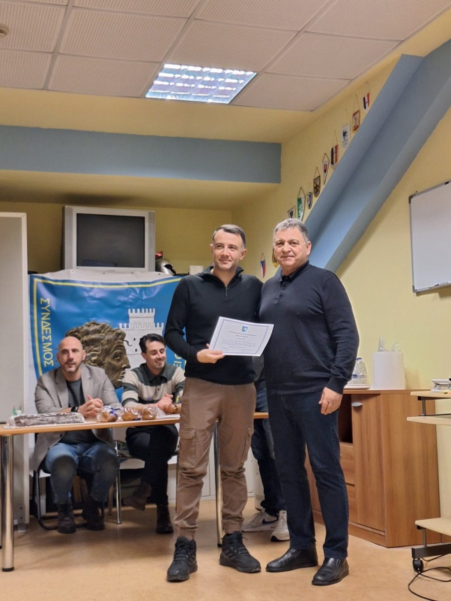 Σε ένα πολύ όμορφο κλίμα, παλιοί και νέοι συνάδελφοι από την πρόσφατη διεξαχθείσα σχολή διαιτησίας του συνδέσμου μας, αντάλλαξαν ευχές και δώρα.