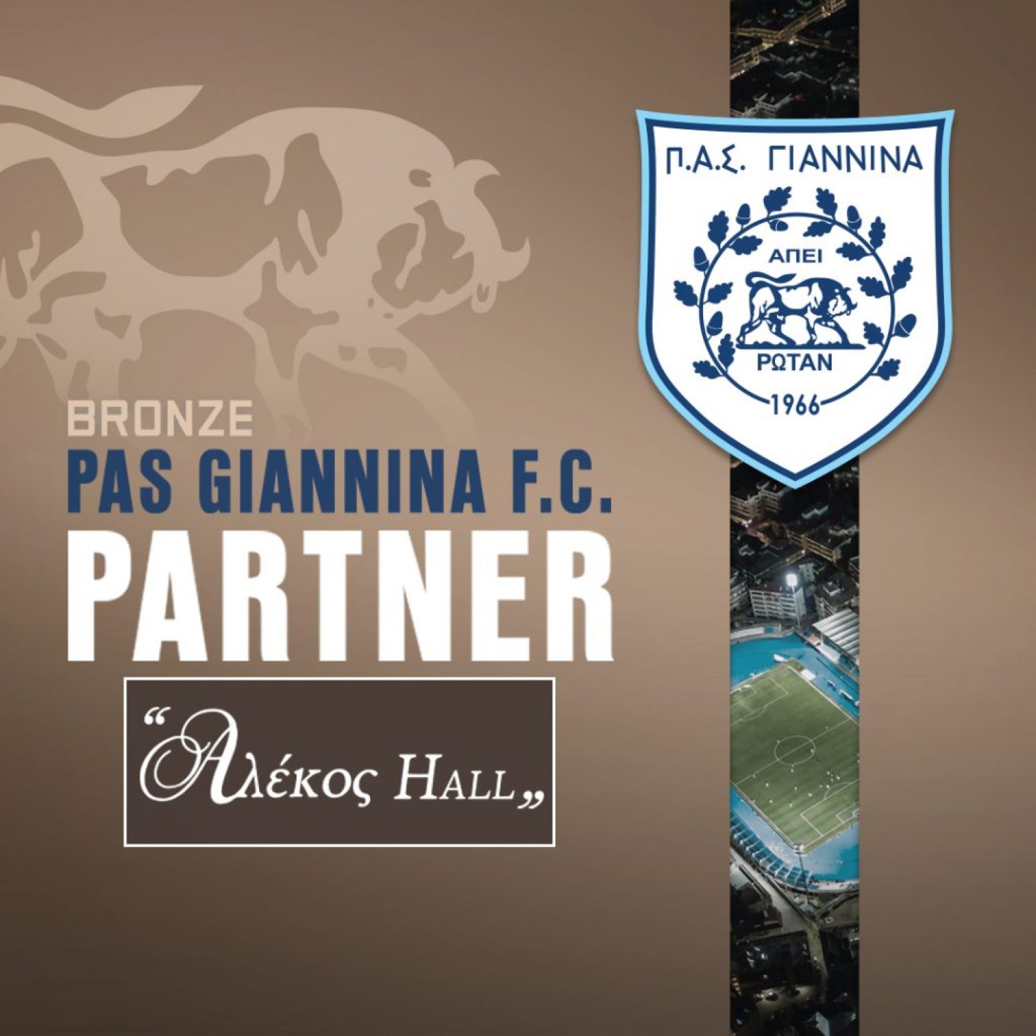 H Π.Α.Ε. Π.Α.Σ. ΓΙΑΝΝΙΝΑ 1966 θέλει να ευχαριστήσει την αίθουσα εκδηλώσεων “ΑΛΕΚΟΣ HALL” για την συμμετοχή στο πρόγραμμα PARTNER CARD της ομάδας μας, με την αγορά BRONZE κάρτας.