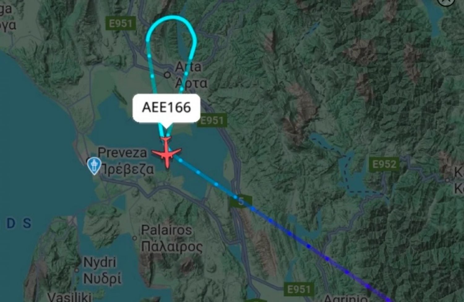 Φτάνοντας πάνω από τον Αμβρακικό και λόγω των δυσμενών καιρικών συνθηκών που επικρατούσαν αναγκάστηκε να κάνει στροφή και να επιστρέψει στο «Ελ. Βενιζέλος».