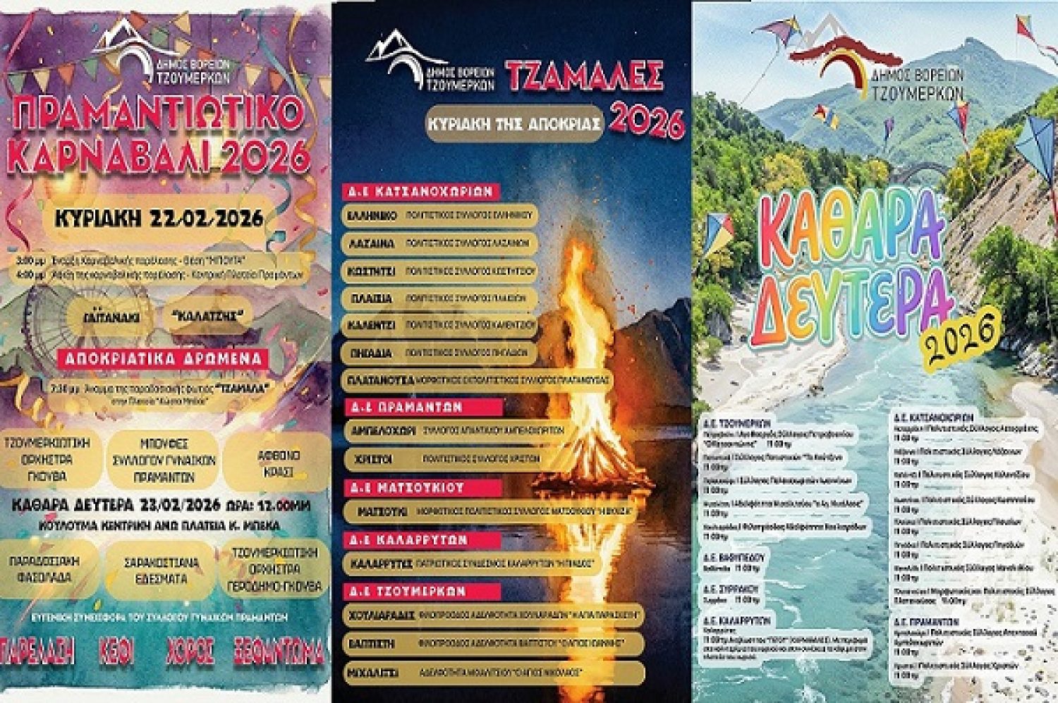 «Η Αποκριά στα Βόρεια Τζουμέρκα είναι μια γιορτή, που βασίζεται στην παράδοση, στη συλλογικότητα και στη φιλοξενία. Καλούμε κατοίκους και επισκέπτες να βρεθούν κοντά μας και να ζήσουν από κοντά τα έθιμα του τόπου μας, με ασφάλεια και καλή διάθεση. Η πρόσβαση προς όλα τα χωριά γίνεται κανονικά και το οδικό δίκτυο παραμένει λειτουργικό, ενώ τυχόν προβλήματα από καταπτώσεις ή φθορές αντιμετωπίζονται άμεσα», αναφέρει σε δήλωσή του ο δήμαρχος Βορείων Τζουμέρκων Νίκος Βαΐτσης.