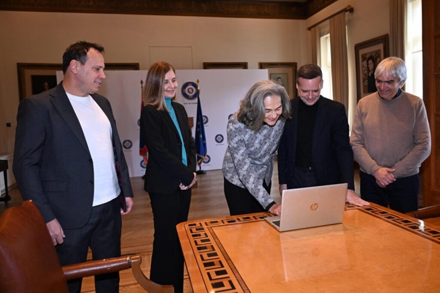 H πρόεδρος του ΣΕΓΑΣ, Σοφία Σακοράφα, ο Δήμαρχος Αθηναίων, Χάρης Δούκας, ο γενικός γραμματέας της Ομοσπονδίας, Γιώργος Γιατρουδάκης, ο αντιπρόεδρος, Κώστας Κεντέρης και η Διευθύντρια Εταιρικής Επικοινωνίας και Βιωσιμότητας της ERGO, Μαρκέλλα Τσουρουγιάννη, παρέλαβαν τους πρώτους αριθμούς των εγγεγραμένων δρομέων, ανοίγοντας και τυπικά τη διαδικασία.