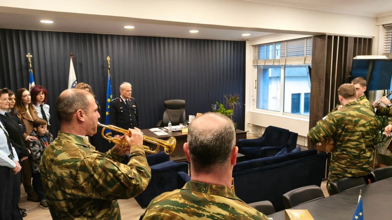 Ο κ. Γενικός υποδέχθηκε με μεγάλη χαρά τη μπάντα της 8ης Μ/Π Ταξιαρχίας Ηπείρου, οι οποίοι έψαλλαν στο αστυνομικό προσωπικό τα χριστουγεννιάτικα Κάλαντα της Ηπείρου!