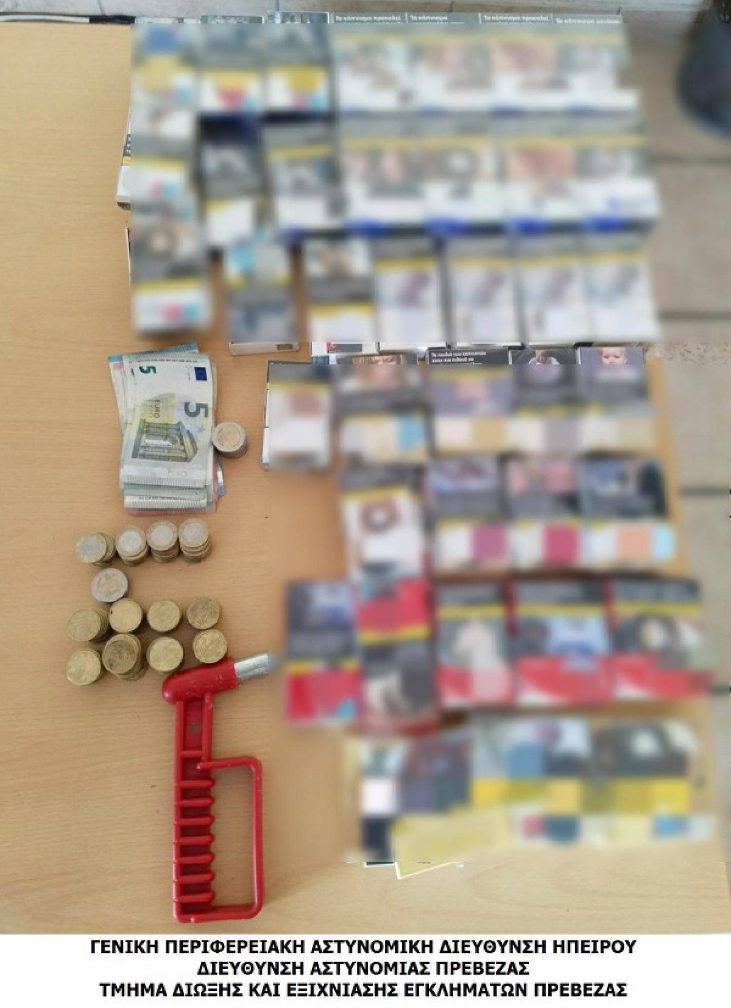 Στην κατοχή των κατηγορούμενων βρέθηκαν και κατασχέθηκαν συνολικά το χρηματικό ποσό των -245- ευρώ και -76- πακέτα τσιγάρα, τα οποία αποδόθηκαν στην ιδιοκτήτρια του μίνι – μάρκετ.