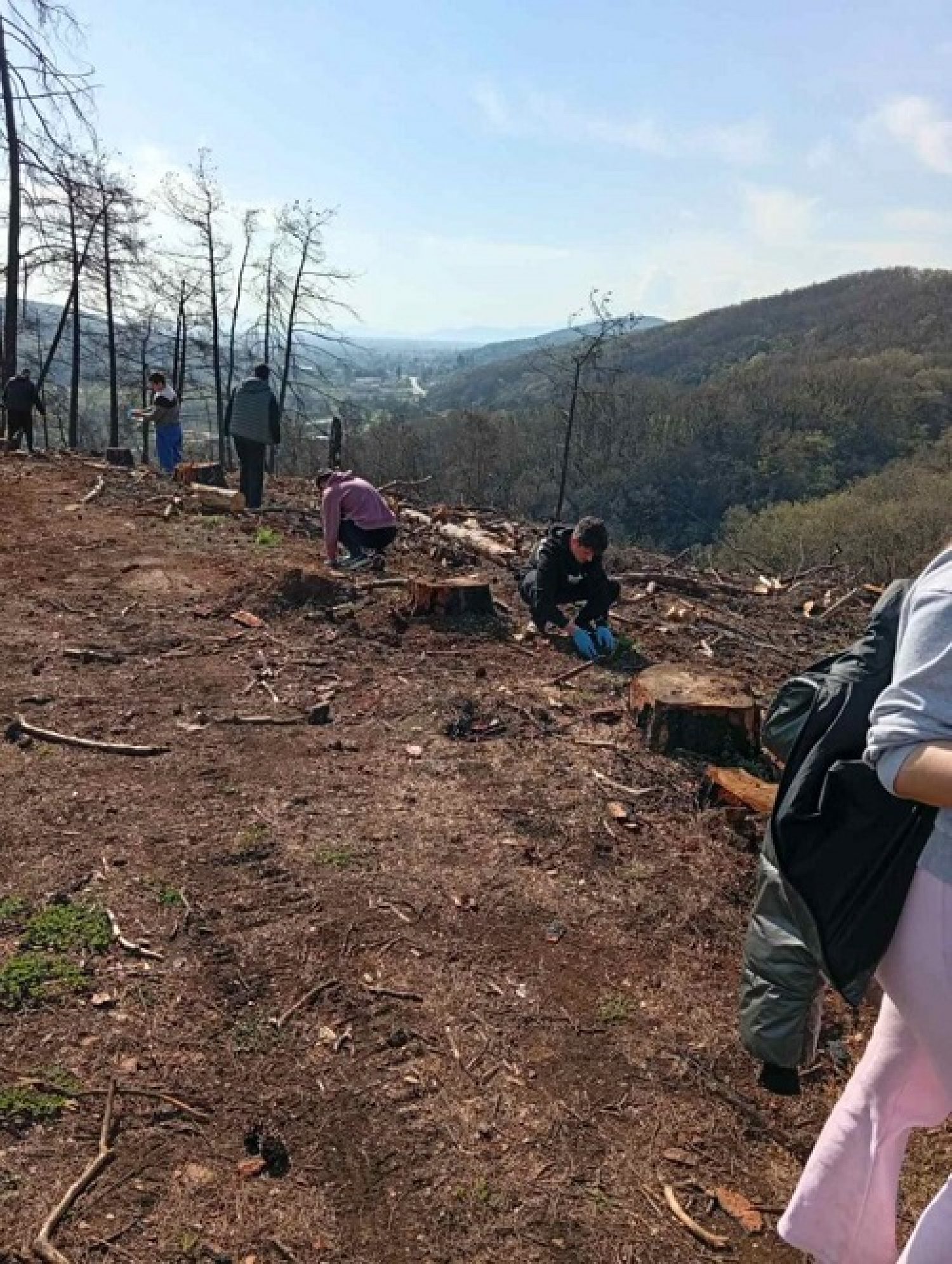 Τα παιδιά παρέλαβαν από τους αρμόδιους πλατύφυλλα χαμηλής ευφλεκτικότητας και τα φύτεψαν σε επιλεγμένα σημεία αντικαθιστώντας τα καμμένα δέντρα που απομακρύνονται σταδιακά από την περιοχή.