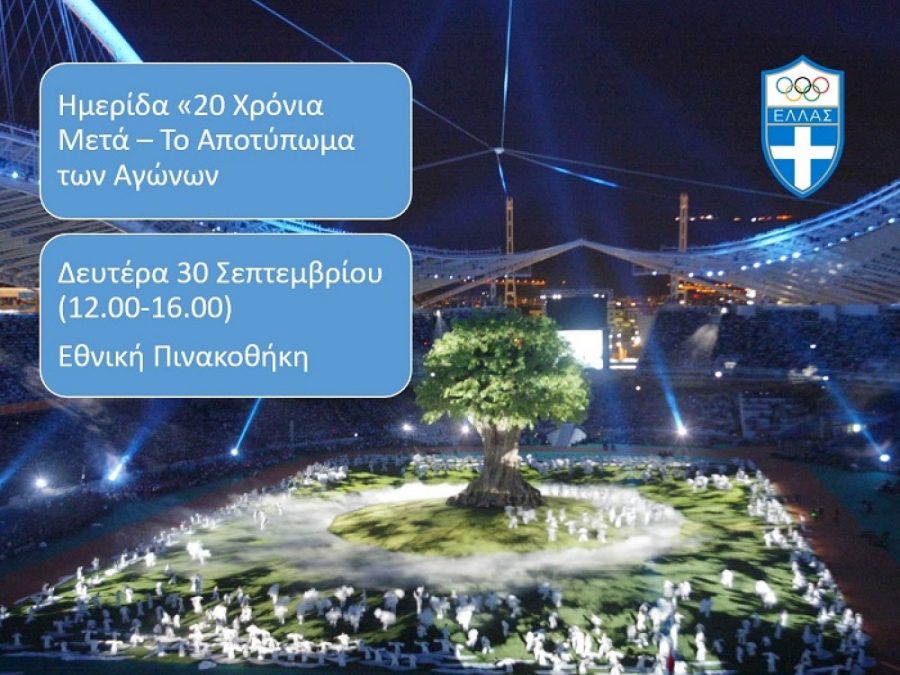 Mετά την υπέροχη εκδήλωση «Αθήνα 20 χρόνια μετά» στο Παναθηναϊκό Στάδιο, η Ελληνική Ολυμπιακή Επιτροπή διοργανώνει την ημερίδα με τίτλο: «20 Χρόνια Μετά – Το αποτύπωμα των Αγώνων», τη Δευτέρα 30 Σεπτεμβρίου 2024, από τις 12:00 έως τις 16:00, στο Αμφιθέατρο της Εθνικής Πινακοθήκης- Μουσείο Αλέξανδρου Σούτσου (Βασιλέως Κωνσταντίνου 50, Αθήνα).