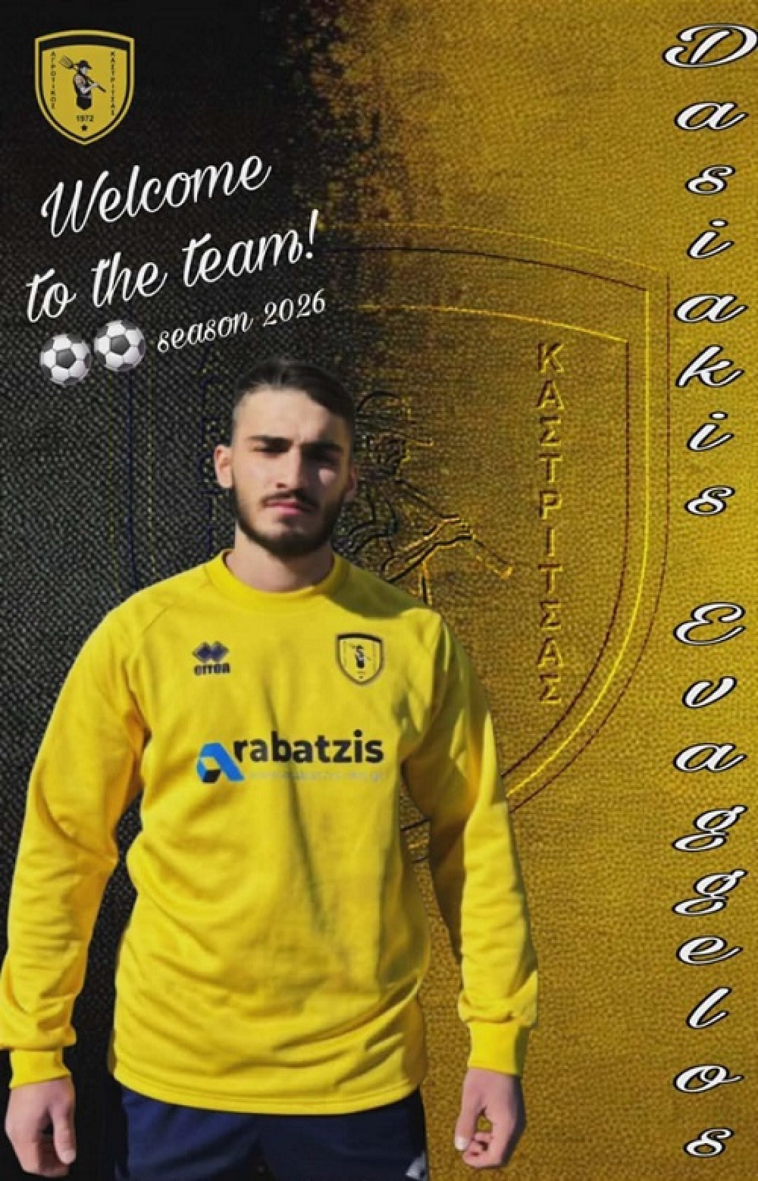 Ο Αγροτικός Καστρίτσας ανακοινώνει με ιδιαίτερη χαρά την απόκτηση του 23χρονου αριστερού χαφ Ευάγγελου Ντασιάκη, ενισχύοντας ουσιαστικά το έμψυχο δυναμικό της ομάδας μας.