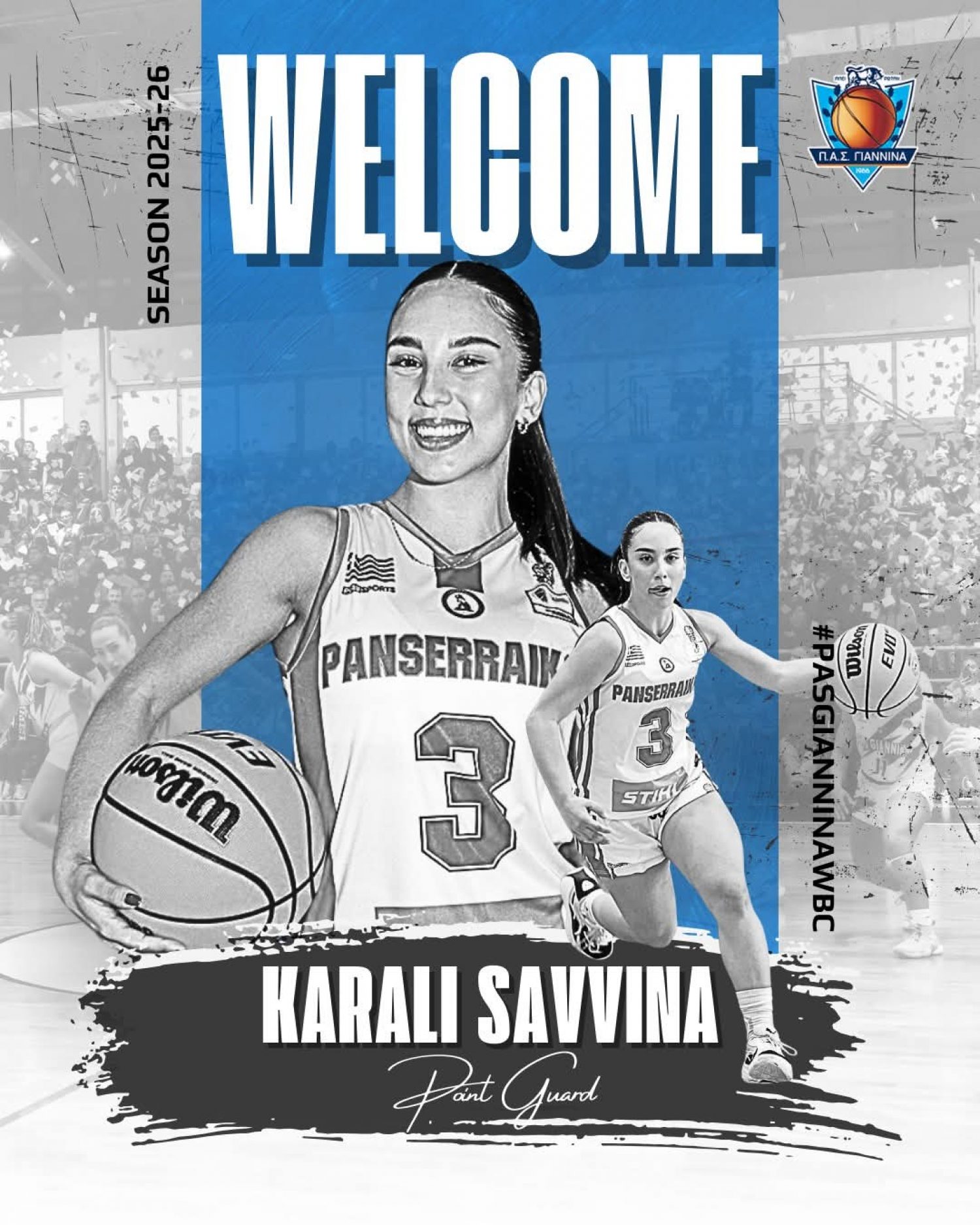 Την καλωσορίζουμε στην οικογένεια του ΠΑΣ Γιάννινα WBC και της ευχόμαστε υγεία, πρόοδο και πολλές επιτυχίες με τα κυανόλευκα!
