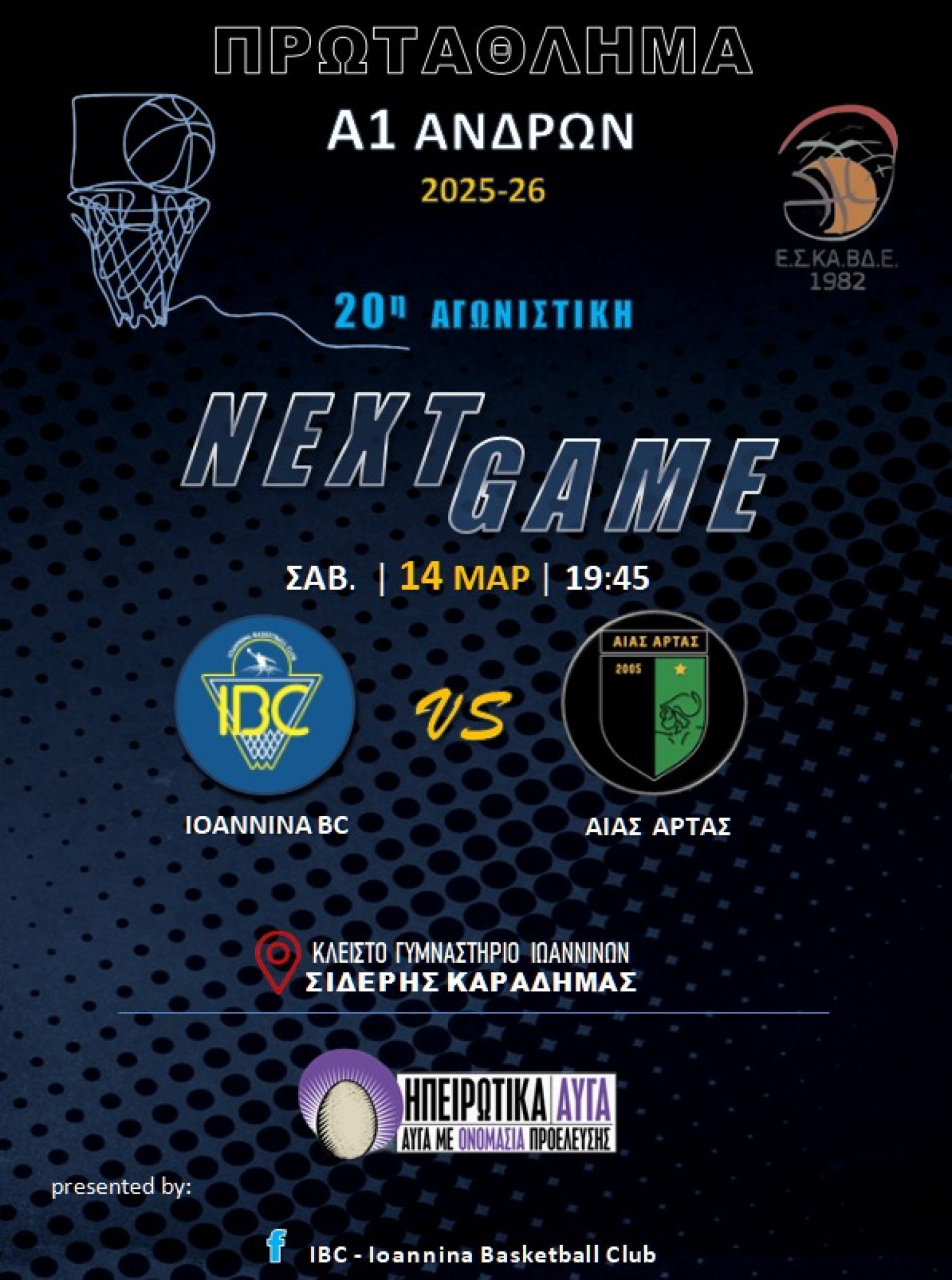 Για την 20η αγωνιστική της Α1 ΕΣΚΑΒΔΕ, το IBC υποδέχεται τον Αίαντα Άρτας.