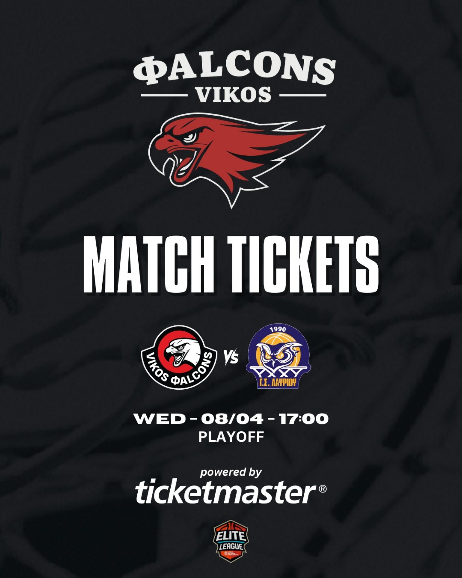 Διαθέσιμα για προπώληση τα εισιτήρια του αγώνα για τα PLAYOFF του πρωταθλήματος της Elite League 2025-26 μεταξύ των Vikos Φalcons και του ΓΣ Λαυρίου ΚΑΕ, που θα διεξαχθεί την Μ. Τετάρτη 8/4 στις 17:00 στο Κλειστό Γυμναστήριο Ιωαννίνων "Σιδέρης Καραδήμας".