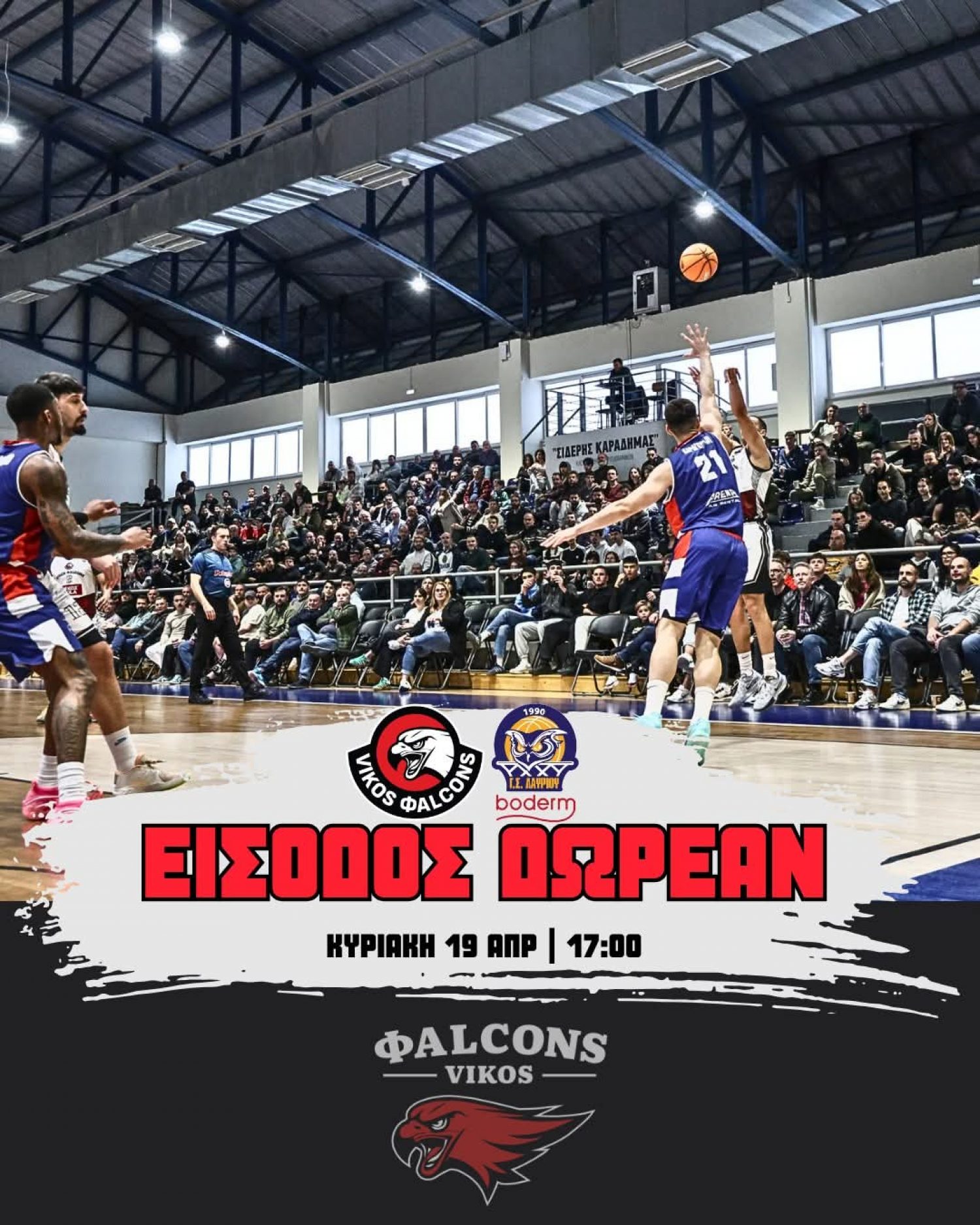 Δωρεάν είσοδος για τους φιλάθλους ανακοίνωσε η διοίκηση των Vikos Φalcons στον κρισιμότατο αγώνα με το Λαύριο την Κυριακή.