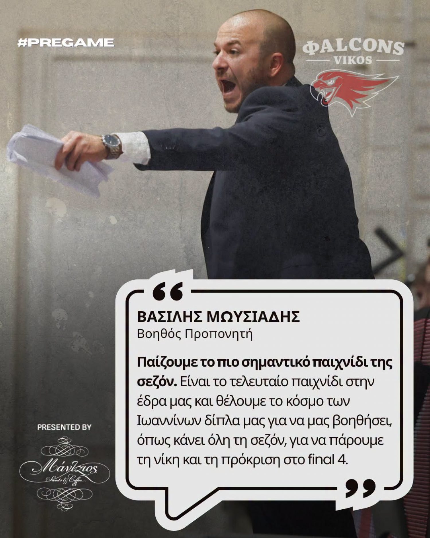 Διαβάστε τις δηλώσεις του βοηθού προπονητή των Vikos Φalcons, Βασίλη Μωυσιάδη και του αθλητή Σαράντη Μαστρογιανόπουλου για την μεγάλη αναμέτρηση των play off με το Λαύριο.
